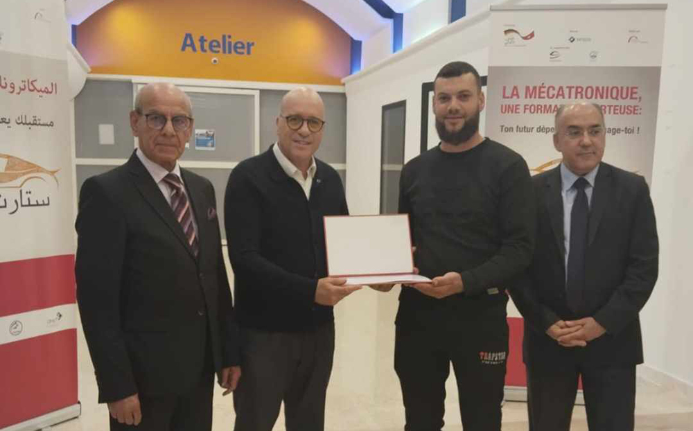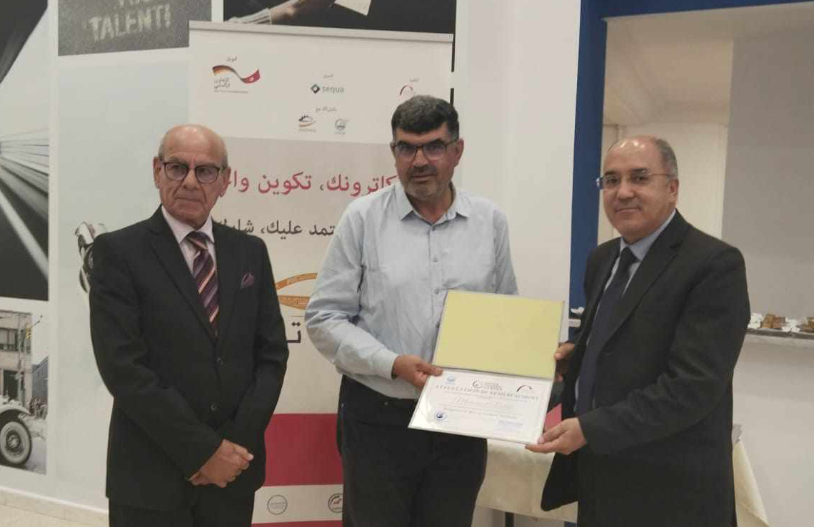 انتظم بمركز التكوين التابع للاتحاد الجهوي للصناعة والتجارة والصناعات التقليدية بصفاقس حفل تسليم شهائد التكوين المستمر من المهنيين الذي اجتازوا دورات تكوينية خلال السنة الماضية 2023. وأشرف على الحفل السيد أنور التريكي رئيس الاتحاد بحضور السيد طارق محجوب المدير الجهوي للتشغيل والتكوين المهني بالنيابة وأعضاء المكتب التنفيذي للاتحاد السادة نزار بالرقيقة وسليم المراكشي وحاتم الفراتي والمنجي بوعتور وغرفة صيانة وإصلاح ميكانيك السيارات يتقدمهم رئيسها السيد أحمد خماخم والسيد أمين القلسي المكلف بمتابعة التكوين المستمر في الميكاترونيك والسيدة أنيسة بالأكحل عن الوحدة الجهوية للتكوين المستمر،إضافة الى إطارات المركز والمتكونين وأصحاب ورش إصلاح وصيانة ميكانيك السيارات التي شاركت في الدورات السنة الماضية.