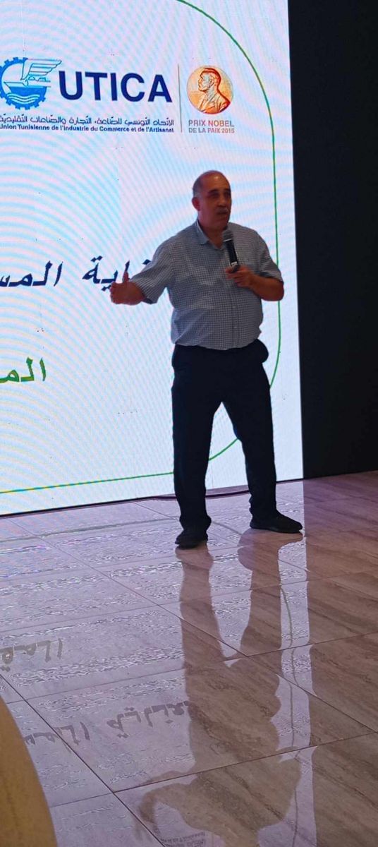 مواصلة لتنفيذ المشروع المُعنْوَن ( بوابة المؤسسات الساعية لتطويرأدائها بما ينسجم مع مبادئ حقوق الانسان وسلامة المناخ RBH) الذي ينفذ بالشراكة بين الاتحاد التونسي للصناعة والتجارة والصناعات التقليدية ووكالة التعاون الألمانيةGIZ ، وتحت إشراف السيدين أنور التريكي رئيس الاتحاد الجهوي للصناعة والتجارة والصناعات التقليدية و( فلوران غارسيا) Floran Garcia رئيس وفد الوكالة الألمانية، نظمت خلية الدعم الساهرة على تنفيذ المشروع ملتقى تحسيسيا وإعلاميا في صفاقس لتحسيس المؤسسات المصدرة بالتمشي العقلاني السليم في التعامل مع سلاسل التوريد باحترام حقوق الانسان والبيئة وتعريف المؤسسات التي لها تعامل مع نظيراتها بالاتحاد الأوروبي بالتشريعات المعتمدة أوروبيا في مجال الحقوق الأساسية للشغل والمعاييرذات العلاقة بالبيئة (مع التركيز على منتوجات البحر). وقد جمع الملتقى فريقا من وكالة GIZ والفريق المكلف من المركزية النقابية بتنسيق تنفيذ البرنامج وهم السيدة منال الزوالي عن اتحاد تونس منسقة وطنية والسادة الفهري شبل عن سوسة وعادل جانب عن المنستير ووسام عبد الغني عن صفاقس .. كما جمعت التظاهرة مختلف الأطراف المعنية بالموضوع من أصحاب مؤسسات مصدرة وخبراء ومؤسسات تعتني بالبيئة والشؤون الاجتماعية . وسجل ايضا حضور رؤساء أو ممثلي الاتحادات الجهوية للصناعة والتجارة والصناعات التقليدية بكل من سوسة والمنستير والمهدية وقابس. ومن الاتحاد الجهوي بصفاقس أعضاء المكتب التنفيذي السيدة محاسن كسكاس والسادة نزاربالرقيقة وسليم المراكشي والمنجي بوعتور وعماد الطرابلسي وحاتم الفراتي ومنير العفاس ويوسف بن حمد رئيس لجنة الشؤون الاجتماعية الذي كان مرفوقا بأعضاء اللجنة إضافة الى رئيس الاتحاد المحلي بقرقنة والغرف الجهوية ل/ مصدري ومحولي منتوجات البحر، /ومؤسسات رسكلة النفايات، /والمستشارين في الأعمال والتصرف وتطوير خدمات المؤسسات، /وحرفيّي خشب الزيتون. ومن الهياكل الجهوية المعنية بالموضوع شارك رؤساء أو ممثلوكل من الاتحاد الجهوي للفلاحة والصيد البحري /ميناء الصيد البحري /المركز الجهوي للنهوض بالصادرات /الادارة الجهوية للتنمية /الادارة الجهوية لوكالة حماية المحيط /الادارة الجهوية للبيئة /الادارة الجهوية لوكالة التصرف في النفايات /شركة تابارورة / ووكالة النهوض بالصيد البحري.