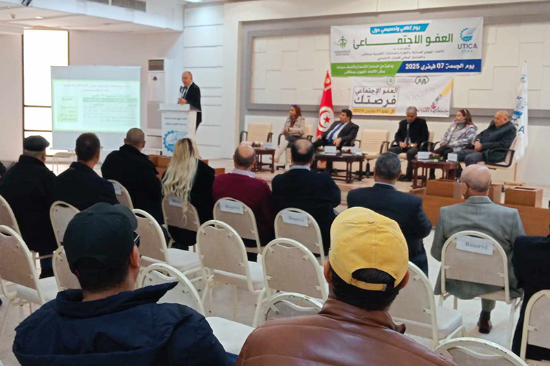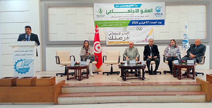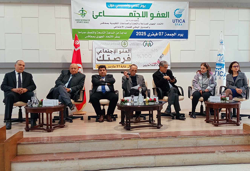 تم تنظيم يوم تحسيسي إعلامي حول العفو الاجتماعي بالاشتراك بين الاتحاد الجهوي للصناعة والتجارة والصناعات التقليدية والصندوق الوطني للضمان الاجتماعي بصفاقس. وأشرف السيدان أنور التريكي رئيس الاتحاد والمنذر الزعيبي المدير الجهوي للشؤون الاجتماعية على هذه التظاهرة التي شهدت حضورثلة من إطارات الإدارة الجهوية ورؤساء مكاتب الصندوق بكل من صفاقس المدينة السيد النفطي شلبي وساقية الزيت السيد الهادي الواعر وقرقنة السيدة إيمان المصمودي وصفاقس الشمالية السيدة زهرة البوزيدي ، وأعضاء المكتب التنفيذي للاتحاد السادة حمادي داود ويوسف بن حمد وحاتم الفراتي وعماد الطرابلسي ومنير العفاس وسليم عبيد والمنجي بوعتور وجمال الدين اللومي إضافة إلى عدد من رؤساء هياكل الاتحاد والمنضوين تحت لواء المنظمة من الفاعلين الاقتصاديين.